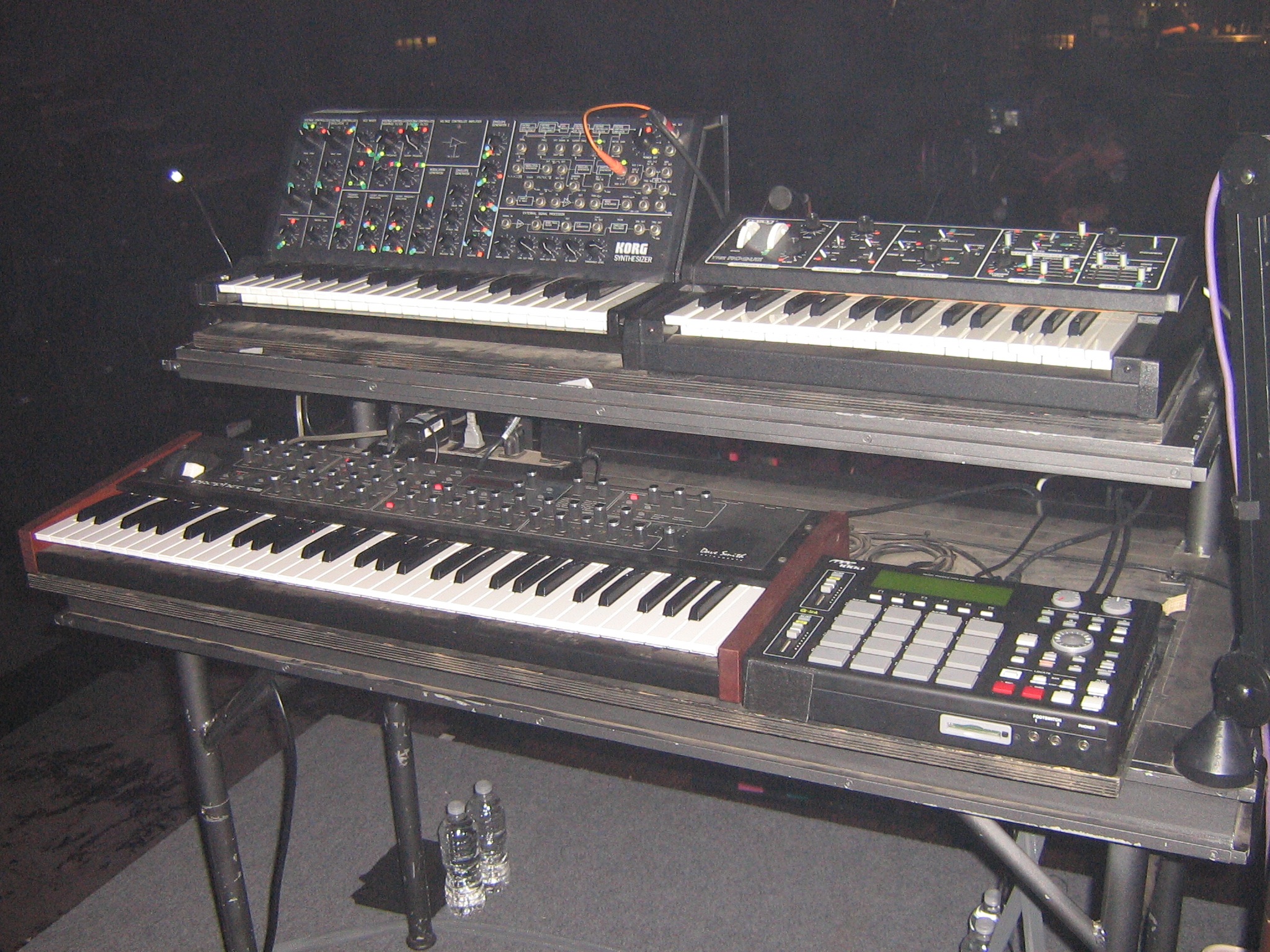 Far stage left was synth world including a Korg MS-20, a Dave Smith Prophet ’08, and a Moog Rogue…