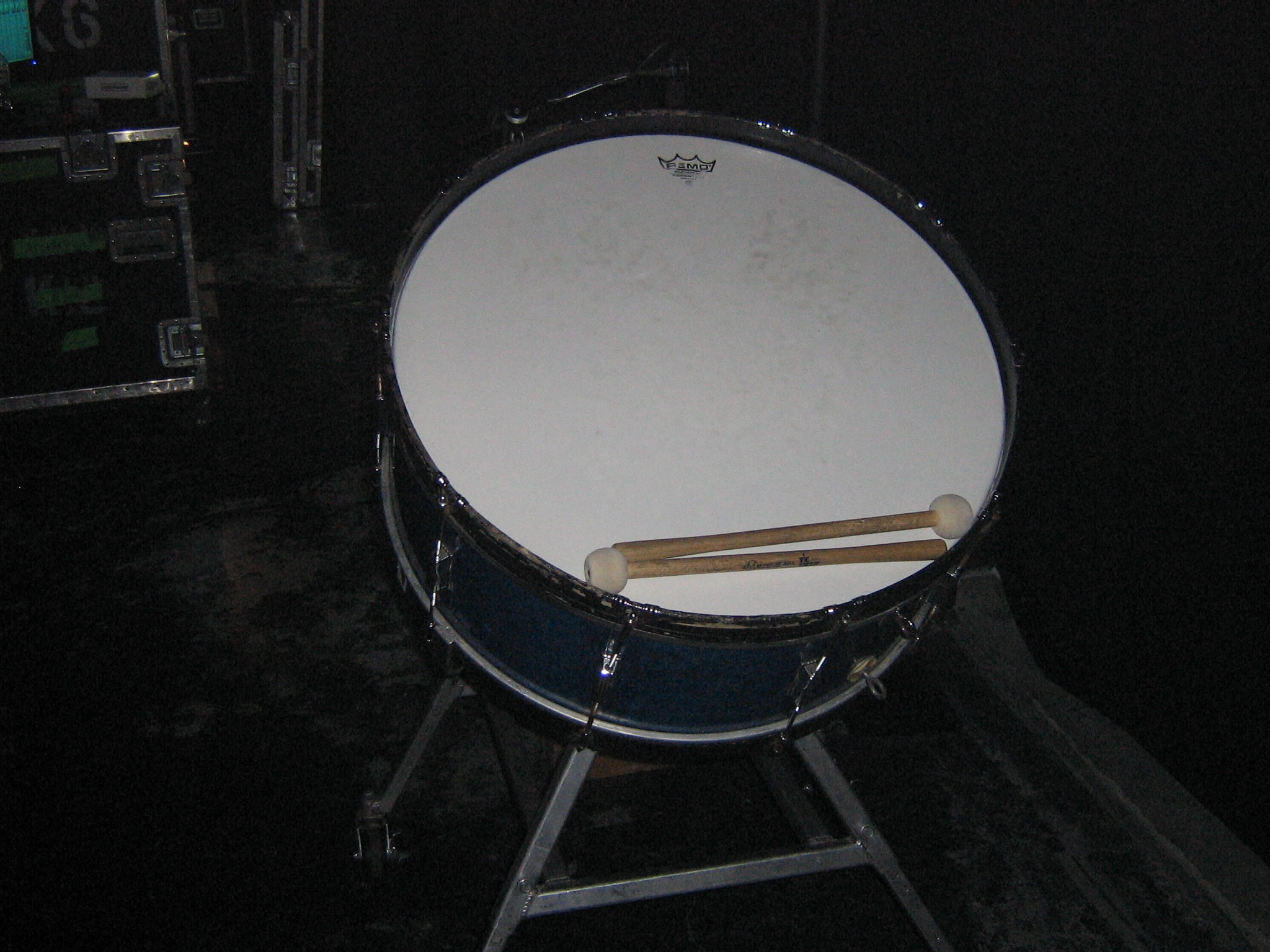 Arcade Fire used a several vintage Music Man amps for this tour. Also, notice the mic stand on the kick drum. It has a rubber base that helps isolate the stand from vibrations in the floor.
