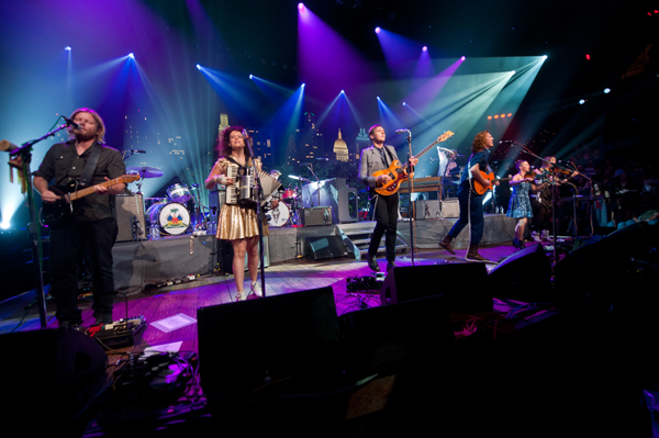 With The Suburbs at the heart of their performance, Arcade Fire take the stage with the singalong pop single “Ready to Start.” Within moments the crowd is in the palm of bandleader Win Butler’s hand, rolling through new classics like “Month of May,” “Rococo” and the Regine Chassagne showcase “Sprawl II,” pushing the studio to a fever pitch. Never fear, Arcade Fire standards “Haiti,” “Keep the Car Running” and, of course, “Wake Up” also make appearances. With nearly every tune an audience-energizing anthem, the passion never flags – this is truly one of the most exciting shows we’ve ever recorded.