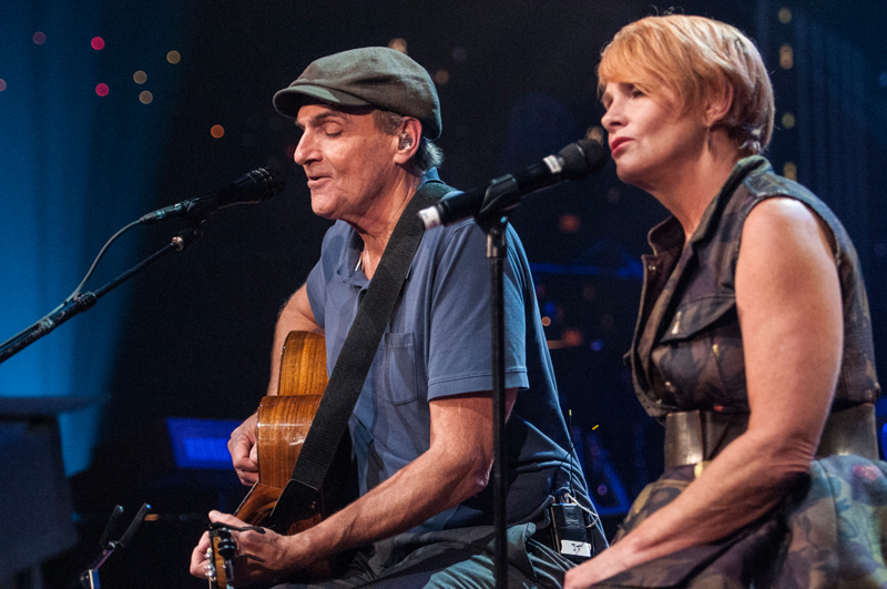 Taylor switches midset from acoustic to electric guitar for the slow-burn blues number “Steamroller” from his landmark 1970 album Sweet Baby James, giving his star-filled 10-piece band a chance to showcase their bona fides. He brings out Austin’s own Shawn Colvin for a beautiful duet version of “You Can Close Your Eyes” from his 1971 album Mudslide Slim. The ecstatic crowd is on its feet for the set-closing gems “Your Smiling Face,” and “How Sweet It Is,” with Taylor so energized he tips his trademark cap in response to the repeated ovations and powerful applause, singing “How sweet it is to be in Austin City tonight.”