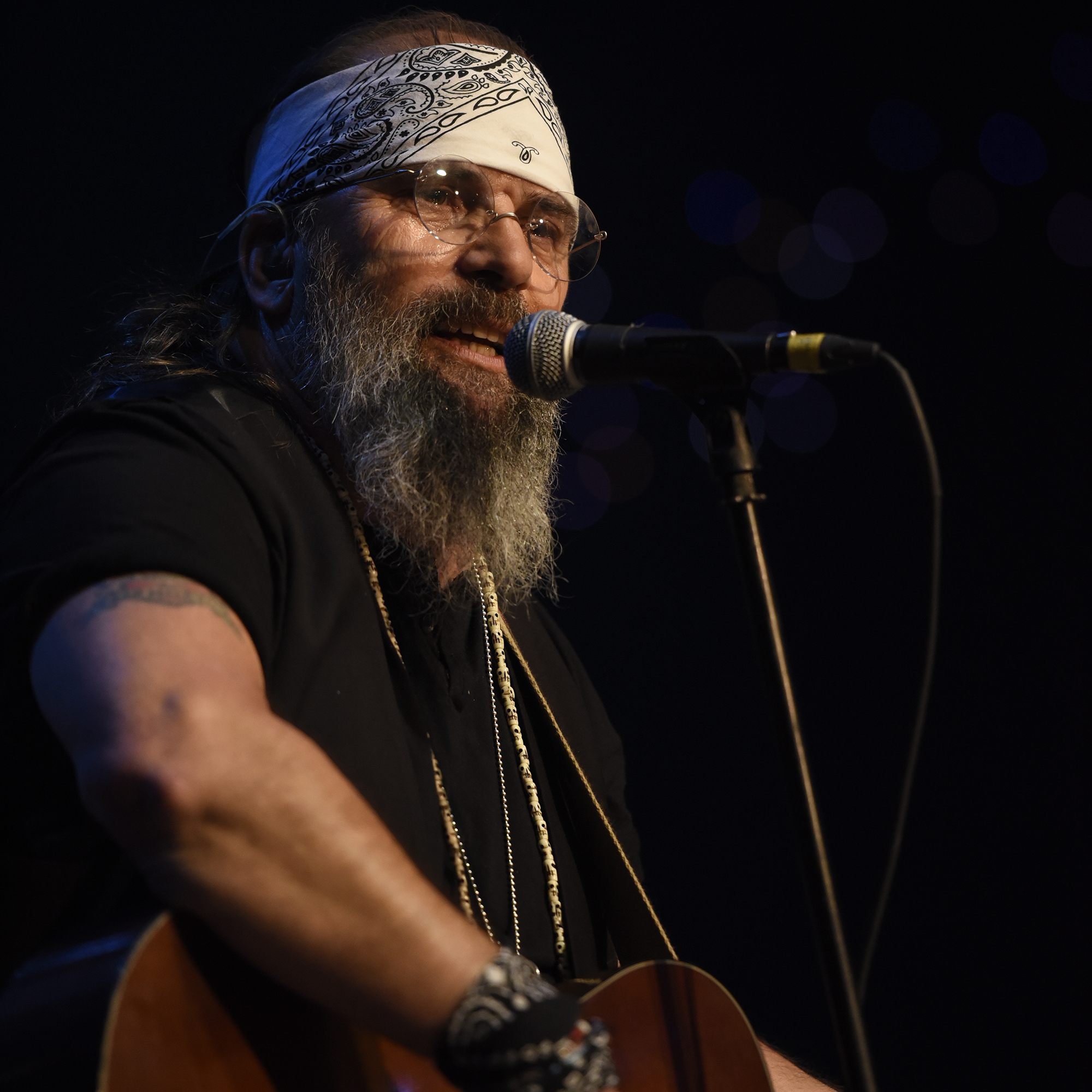 Joined by his long-running five-piece band The Dukes, Earle hit the stage kicking off his Guy Clark tribute with the classic “Dublin Blues,” receiving exuberant cheers at the opening line “Wish I was in Austin.” Earle immediately went into “Texas 1947,” featuring the expert pedal steel work of Ricky Ray Jackson. After sharing a short story about how he met Guy Clark while hitchhiking around Texas, the band performed the ode to the Hill Country honky-tonkin’ queen “Rita Ballou,” featuring Eleanor Whitmore on violin. Following a tale about Clark’s loyalty to Texas BBQ over Tennessee style BBQ, Joe Ely joined Earle on stage to perform “Desperadoes Waiting For a Train” – two Texas music legends trading verses on one of the state’s most influential songs. The Dukes quit the stage temporarily, so Earle could essay “The Last Gunfighter Ballad,” a Clark song made famous by Johnny Cash and Willie Nelson. The band returned for “The Randall Knife,” one of Clark’s most autobiographical and arresting tunes, followed by the beloved “L.A. Freeway,” one of his most famous. With Earle donning his mandolin, he and The Dukes got acoustic for “New Cut Road,” an explicitly bluegrass-flavored tune that threw another spotlight on Whitmore, as well as her flatpicking husband Chris Masterson. After introducing the band, Earle went into “Heartbroke,” going through the first verse before being joined onstage by another Clark mentee – songwriting great Rodney Crowell, who originally recorded the song in 1980, before it became a hit for Ricky Skaggs in 1982.